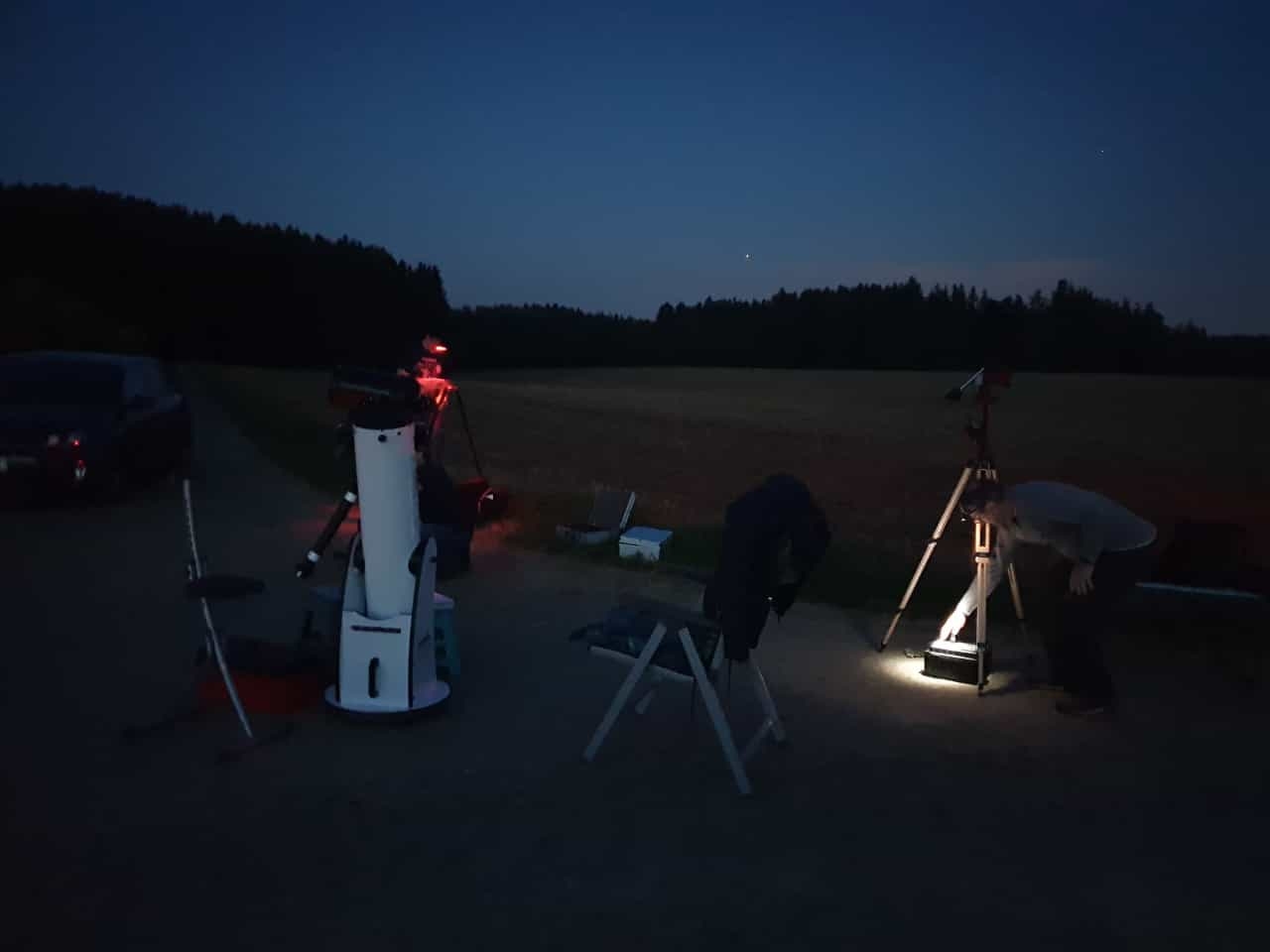 Ab 20:30 Uhr kamen alle nacheinander an und die Teleskope, Kameras und Liegen bzw. Liegestühle wurden in Position gebracht.