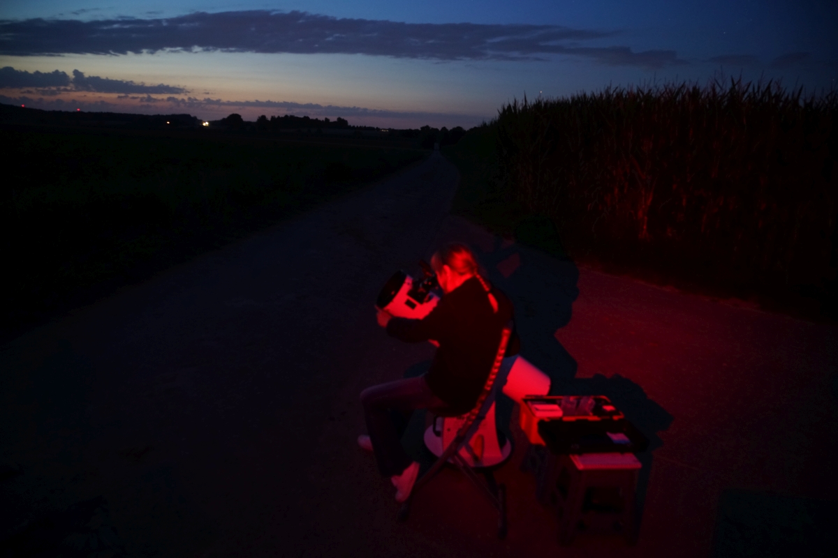 Ab 20:30 Uhr kamen alle nacheinander an und die Teleskope, Kameras und Liegen bzw. Liegestühle wurden in Position gebracht.