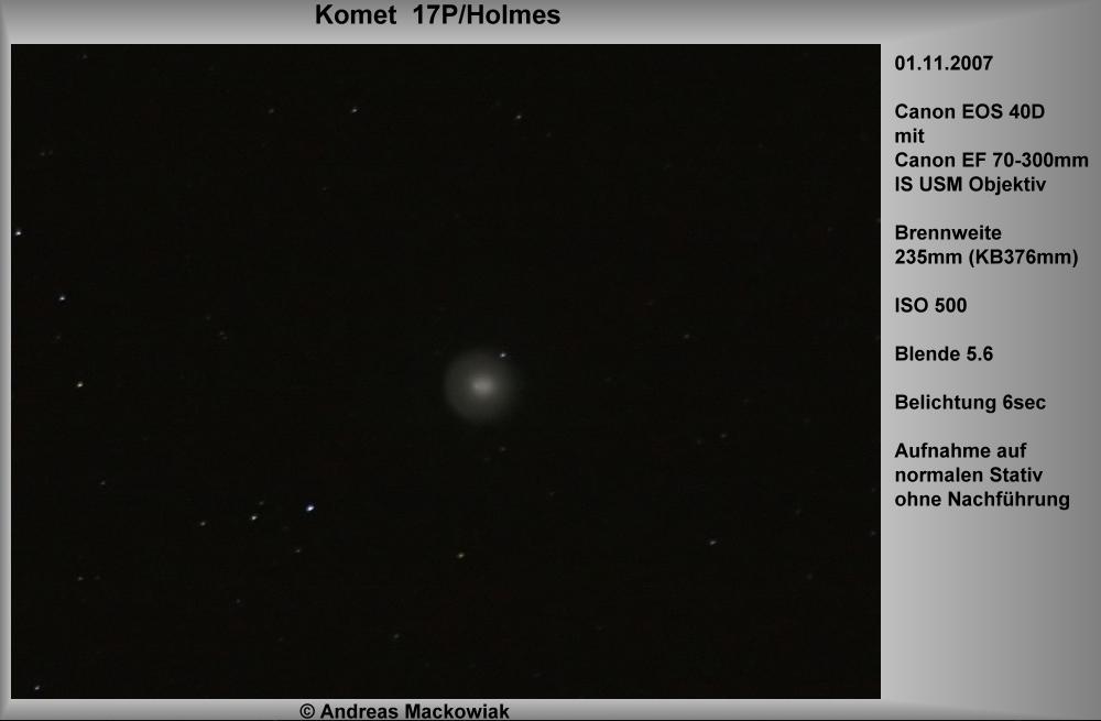 Weitere frühere Kometen hier weitere Bilder von Kometen 17P/Holmes C/2007 N3 Lulin C/2006 P1 (McNaught)